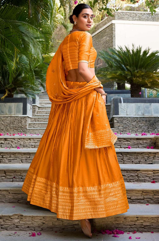 Regular price From £96.40 GBPRegular priceUnit price / per£219.57 GBPSale price From £96.40 GBP-56% OFFOrange Chanderi Lehenga Choli - SFROY566102