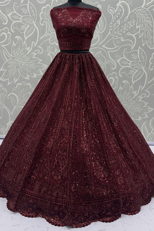 Regular price From £225.69 GBPRegular priceUnit price / per£365.90 GBPSale price From £225.69 GBP-38% OFFMaroon Bridal Net Lehenga Choli - SFANJ3135