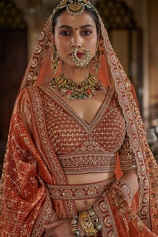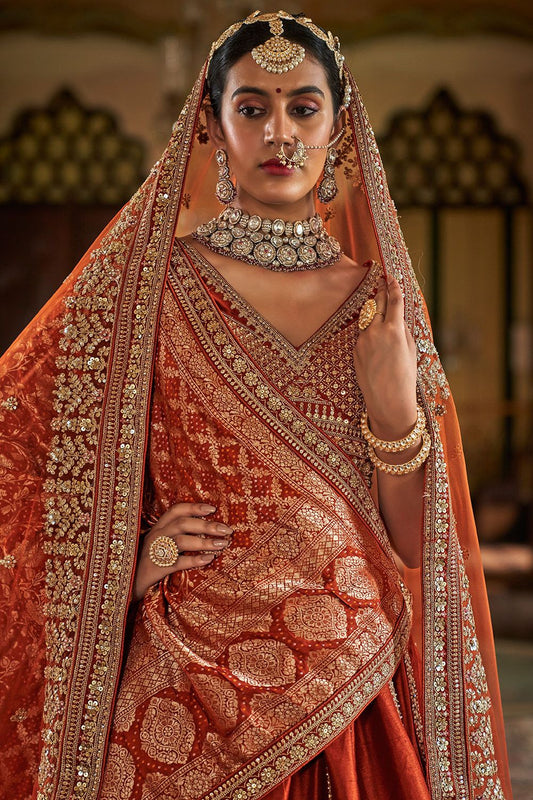 Regular price From £210.58 GBPRegular priceUnit price / per£267.90 GBPSale price From £210.58 GBP-21% OFFOrange Silk Royal Bridal Lehenga Choli SFSJDN33901