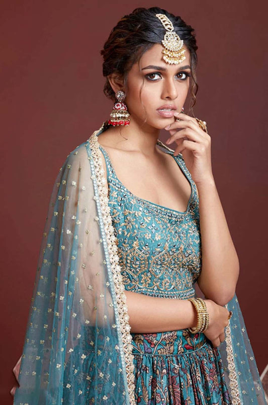 Regular price From £105.66 GBPRegular priceUnit price / per£219.57 GBPSale price From £105.66 GBP-51% OFFTurquoise Organza Lehenga Choli - SFZC5501