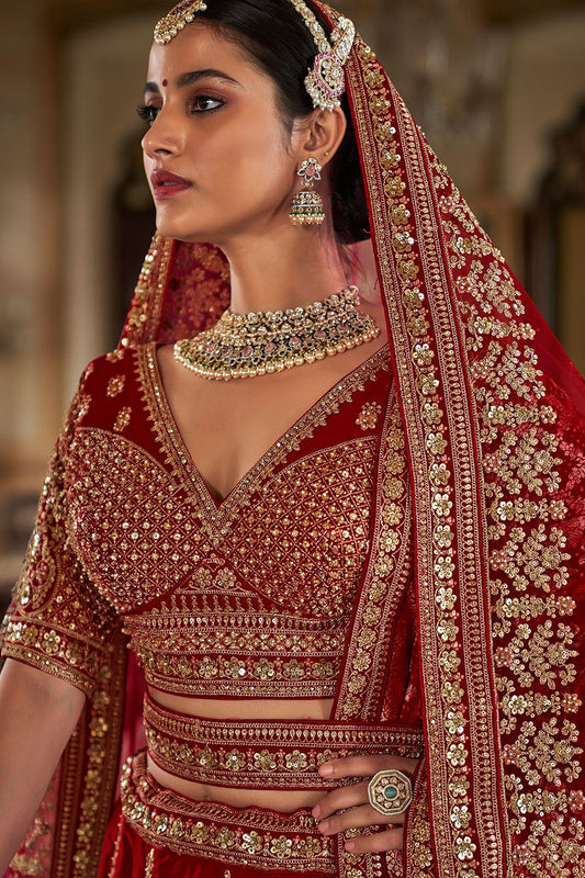 Regular price From £388.66 GBPRegular priceUnit price / per£458.09 GBPSale price From £388.66 GBP-15% OFFRed Silk Royal Bridal Lehenga Choli SFSJDN33903