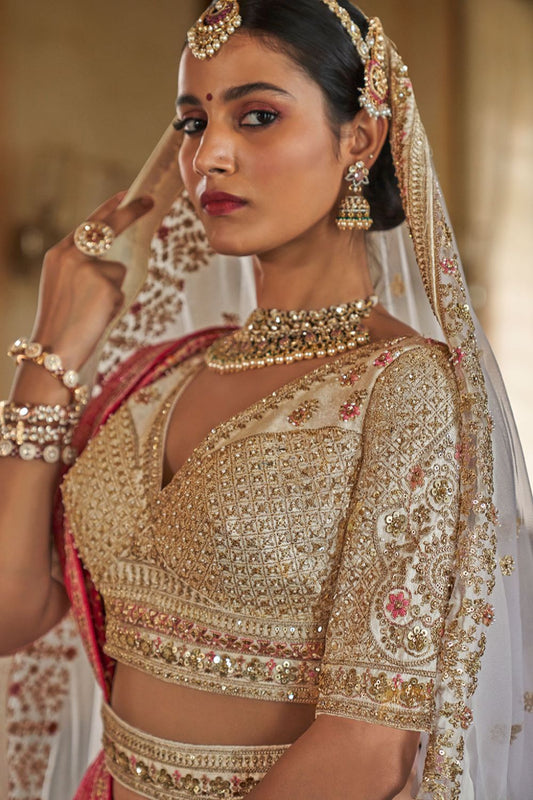 Regular price From £388.66 GBPRegular priceUnit price / per£458.09 GBPSale price From £388.66 GBP-15% OFFWhite Silk Royal Bridal Lehenga Choli SFSJDN33907