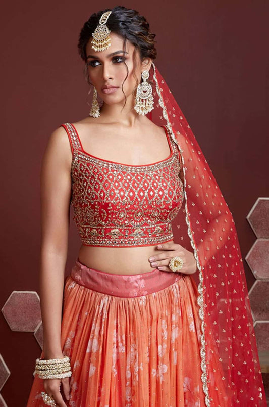 Regular price From £122.21 GBPRegular priceUnit price / per£219.57 GBPSale price From £122.21 GBP-44% OFFOrange Organza Lehenga Choli - SFZC5503