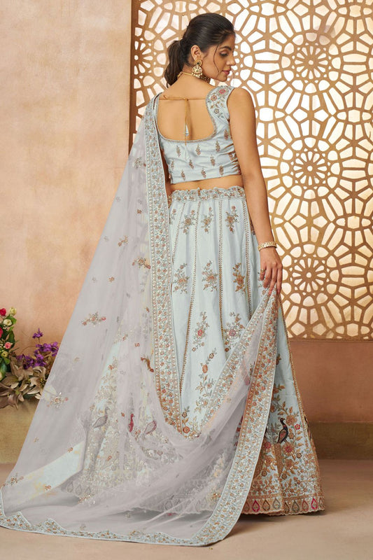 Regular price From £236.63 GBPRegular priceUnit price / per£284.51 GBPSale price From £236.63 GBP-16% OFFBlue Silk Reception Party Wear Lehenga Choli SFRELS4415