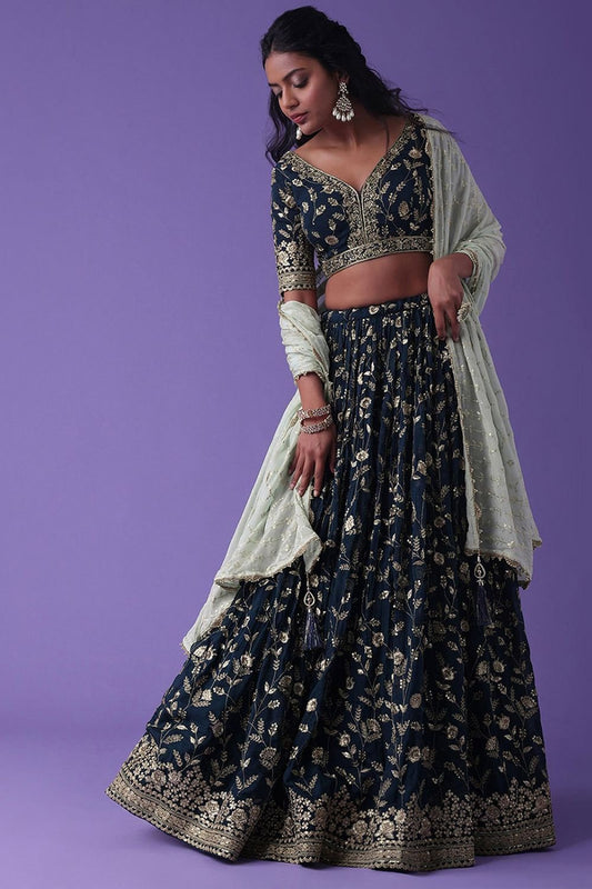 Regular price From £129.53 GBPRegular priceUnit price / per£145.00 GBPSale price From £129.53 GBP-10% OFFBlue Partywear Georgette Lehenga Choli SFZC4709