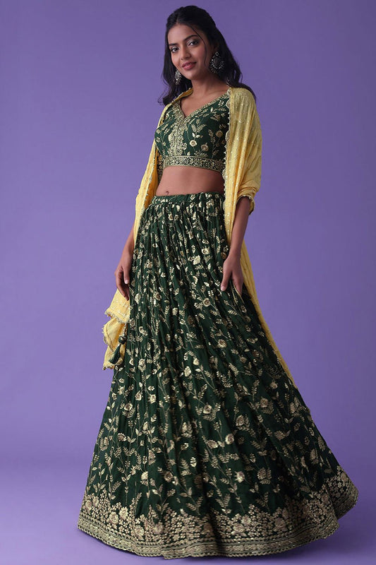 Regular price From £224.51 GBPRegular priceUnit price / per£264.51 GBPSale price From £224.51 GBP-15% OFFGreen Silk Reception Party Wear Lehenga Choli SFRELS4414