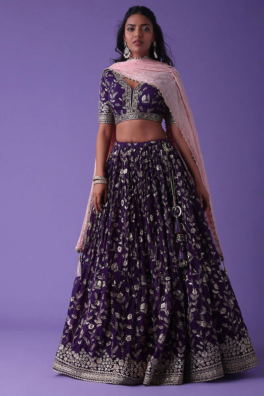 Regular price From £236.63 GBPRegular priceUnit price / per£284.51 GBPSale price From £236.63 GBP-16% OFFPurple Wedding Lehenga Choli Set In Georgette SFSAR316793