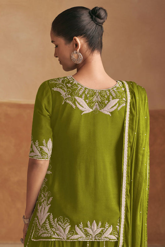 Regular price £99.21 GBPRegular priceUnit price / per£115.78 GBPSale price £99.21 GBP-14% OFFGreen Sangeet Party Lehenga Choli Set In Chinnon SFSMT40702