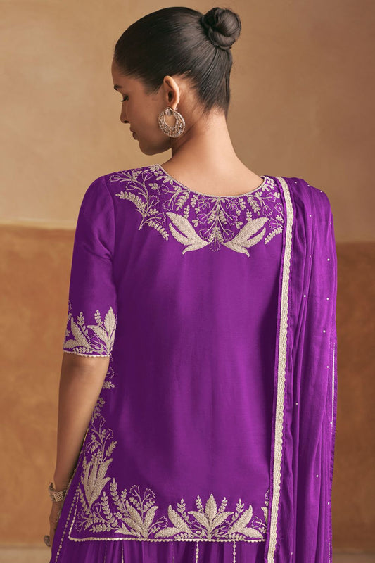 Regular price £99.21 GBPRegular priceUnit price / per£115.78 GBPSale price £99.21 GBP-14% OFFPurple Sangeet Party Lehenga Choli Set In Chinnon SFSMT40703