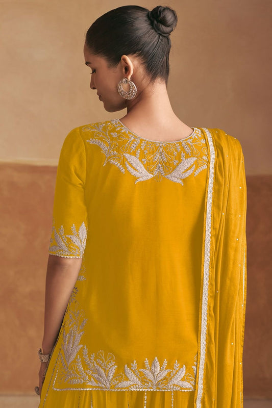 Regular price £99.21 GBPRegular priceUnit price / per£115.78 GBPSale price £99.21 GBP-14% OFFYellow Sangeet Party Lehenga Choli Set In Chinnon SFSMT40704