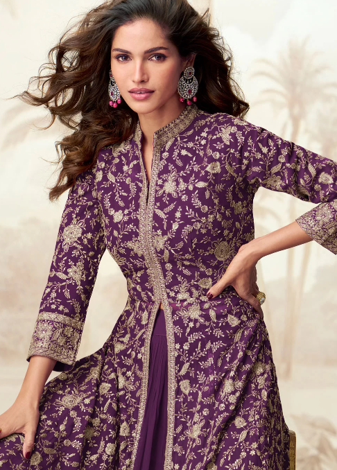 Regular price From £234.51 GBPRegular priceUnit price / per£254.51 GBPSale price From £234.51 GBP-7% OFFPurple Silk Reception Party Wear Lehenga Choli SFRELS4413