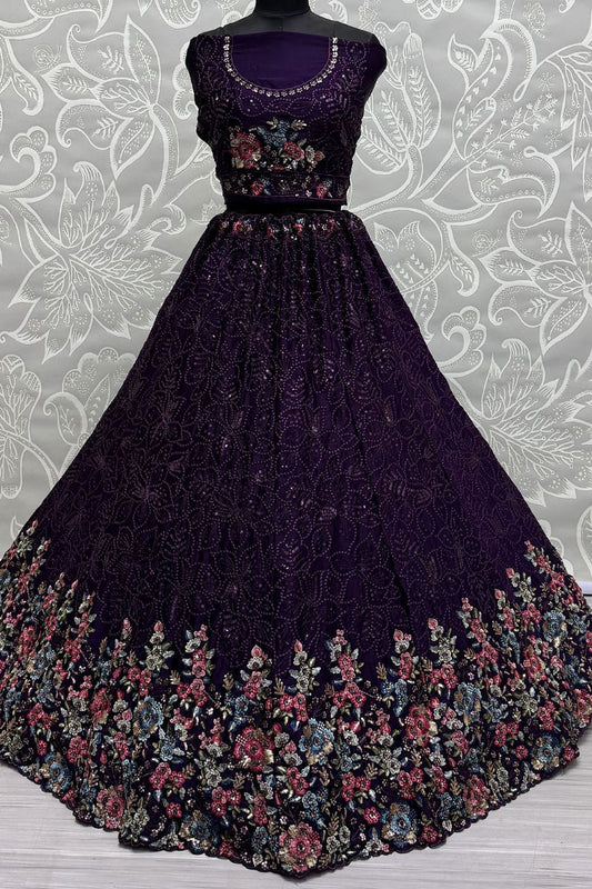 Regular price From £100.30 GBPRegular priceUnit price / per£147.55 GBPSale price From £100.30 GBP-32% OFFPurple Georgette Partywear Lehenga Set SFRELS3701