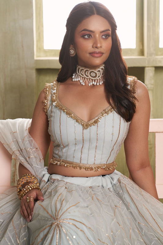Regular price From £98.90 GBPRegular priceUnit price / per£127.65 GBPSale price From £98.90 GBP-22% OFFWhite Evening Wedding Net Wedding Lehenga Choli SFSA482602