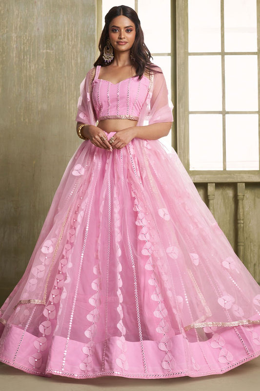 Regular price From £101.05 GBPRegular priceUnit price / per£127.65 GBPSale price From £101.05 GBP-20% OFFPink Evening Wedding Net Wedding Lehenga Choli SFSA482603