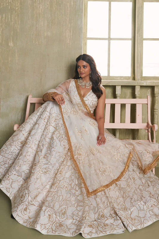 Regular price From £147.55 GBPRegular priceUnit price / per£210.15 GBPSale price From £147.55 GBP-29% OFFEnchanting White Chinnon Wedding Lehenga Choli SFANJ2915