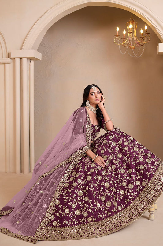 Regular price From £147.55 GBPRegular priceUnit price / per£210.15 GBPSale price From £147.55 GBP-29% OFFEnchanting Purple Chinnon Wedding Lehenga Choli SFANJ2916