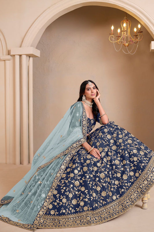 Regular price From £180.64 GBPRegular priceUnit price / per£210.15 GBPSale price From £180.64 GBP-14% OFFEnchanting Blue Chinnon Wedding Lehenga Choli SFANJ2914