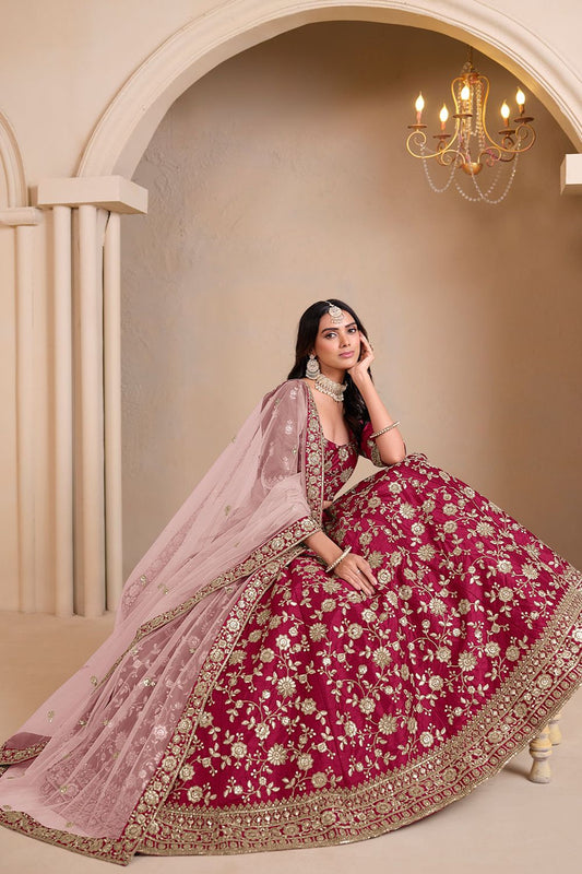 Regular price From £70.51 GBPRegular priceUnit price / per£111.72 GBPSale price From £70.51 GBP-36% OFFMagenta Chinnon Wedding Party Lehenga In Flower Pattern SFANJ2949