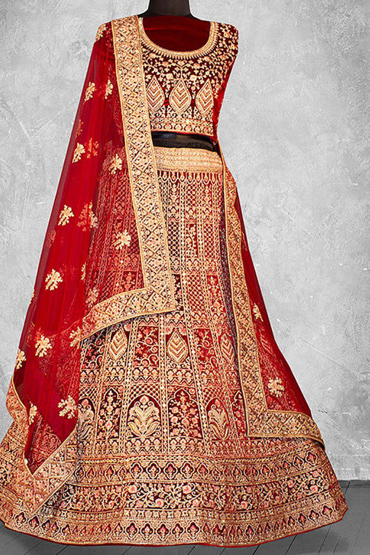 Regular price From £89.59 GBPRegular priceUnit price / per£147.55 GBPSale price From £89.59 GBP-39% OFFRed Velvet Designer Lehenga Choli Set SFDIW42215