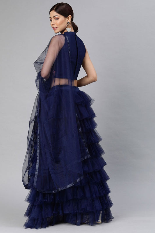 Blue Net Ruffle Partywear Lehenga Choli SFROY505702