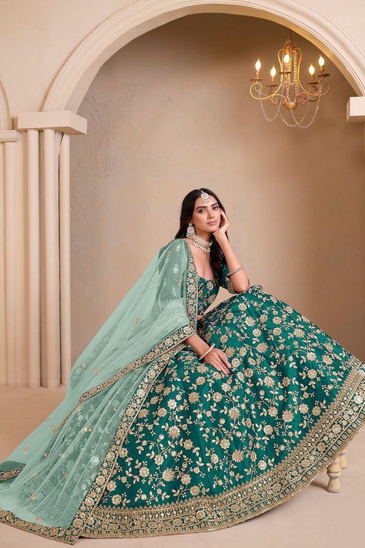 Regular price From £147.55 GBPRegular priceUnit price / per£210.15 GBPSale price From £147.55 GBP-29% OFFEnchanting Green Chinnon Wedding Lehenga Choli SFANJ2917