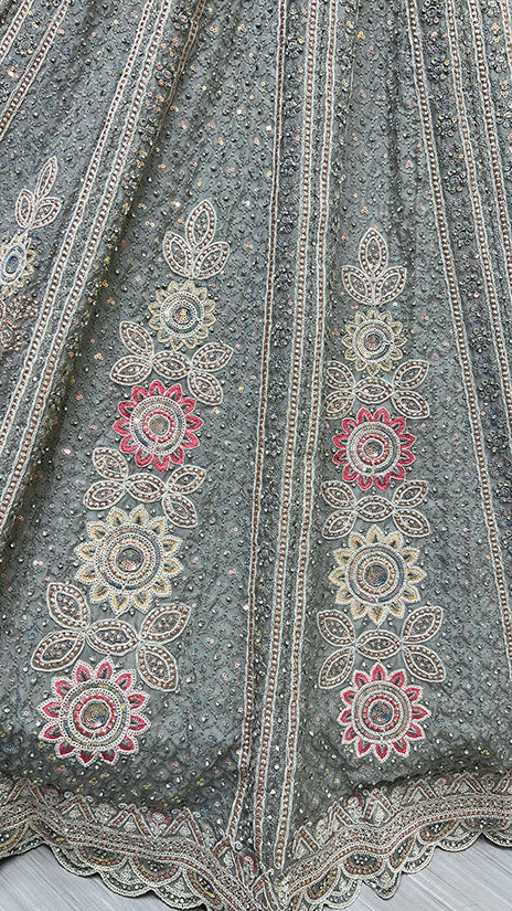 Regular price From £147.55 GBPRegular priceUnit price / per£176.09 GBPSale price From £147.55 GBP-16% OFFRegal Grey Velvet Wedding Reception Lehenga Set SFANJ2389