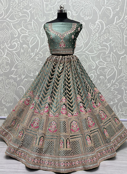 Regular price From £223.44 GBPRegular priceUnit price / per£265.16 GBPSale price From £223.44 GBP-15% OFFRegal Green Velvet Wedding Reception Lehenga Set SFANJ2466