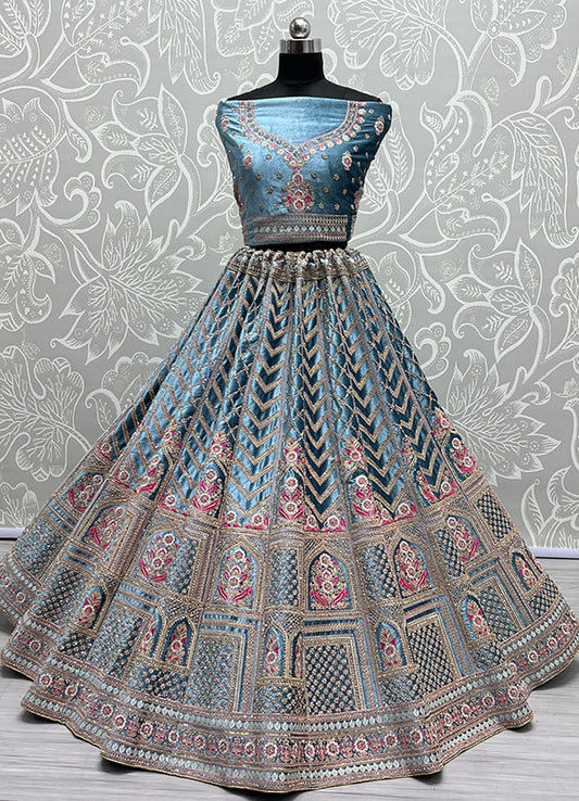 Regular price From £147.55 GBPRegular priceUnit price / per£210.15 GBPSale price From £147.55 GBP-29% OFFEnchanting Blue Chinnon Wedding Lehenga SFANJ2920