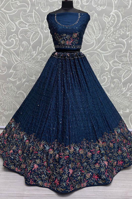 Regular price From £160.04 GBPRegular priceUnit price / per£210.15 GBPSale price From £160.04 GBP-23% OFFMajestic Navy Blue Dola Silk Designer Lehenga SFSA477505R