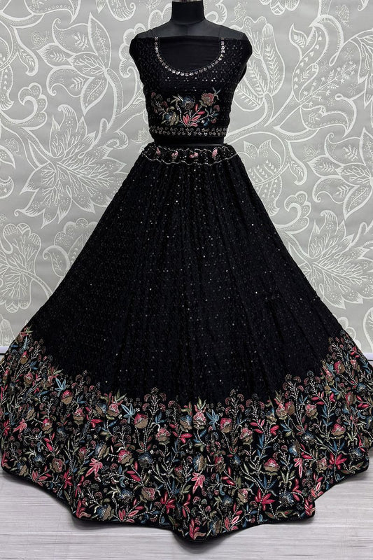Enchanting Black Chinnon Wedding Lehenga Choli SFANJ2918
