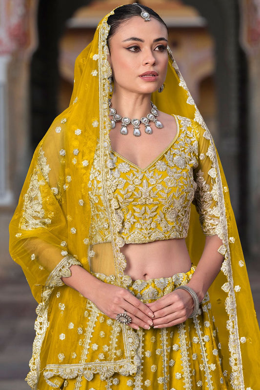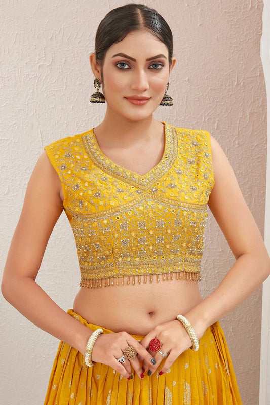 Regular price From £160.04 GBPRegular priceUnit price / per£210.15 GBPSale price From £160.04 GBP-23% OFFYellow Dola Silk Designer Haldi Ceremony Lehenga SFSA477508R