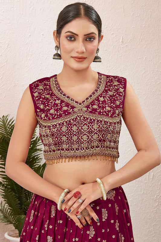 Regular price From £160.04 GBPRegular priceUnit price / per£210.15 GBPSale price From £160.04 GBP-23% OFFMajestic Magenta Dola Silk Designer Lehenga SFSA477502R