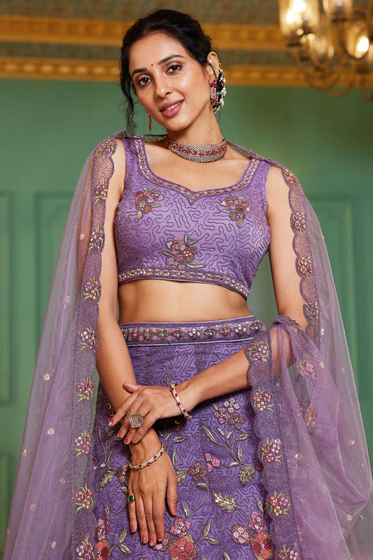 Purple Net Heavy Party Lehenga Choli Set SFROY509018