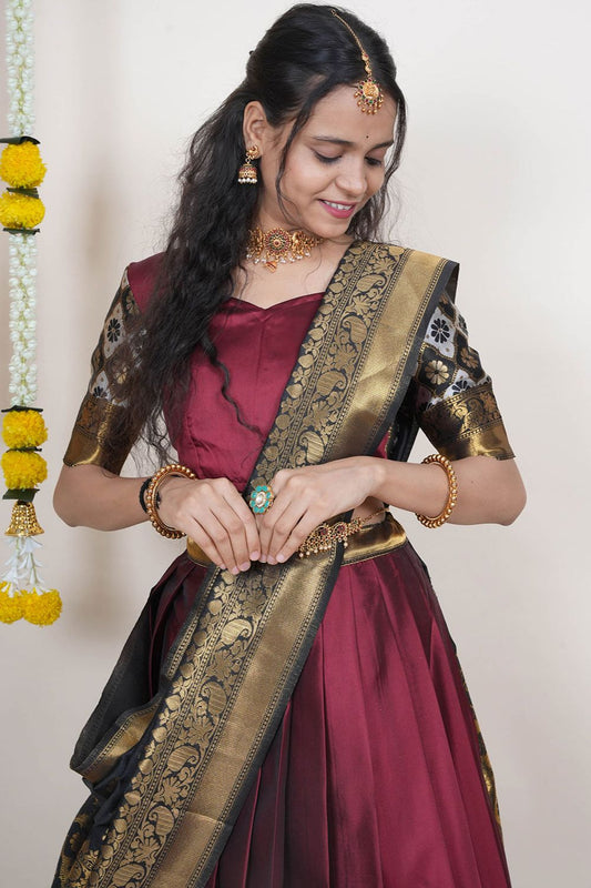 Regular price From £87.89 GBPRegular priceUnit price / per£114.90 GBPSale price From £87.89 GBP-23% OFFMaroon Silk Sangeet Lehenga Choli SFROY538503