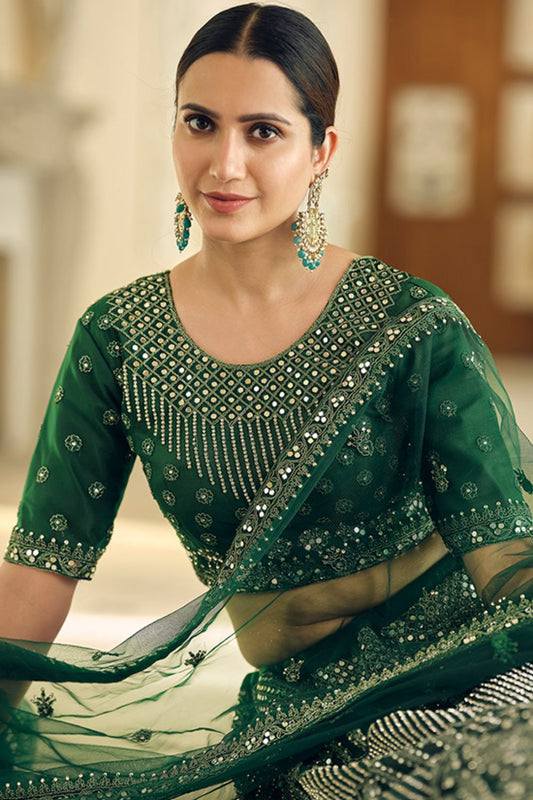 Green Timeless Bridal Lehenga In Net Lehenga Choli SFARY12101