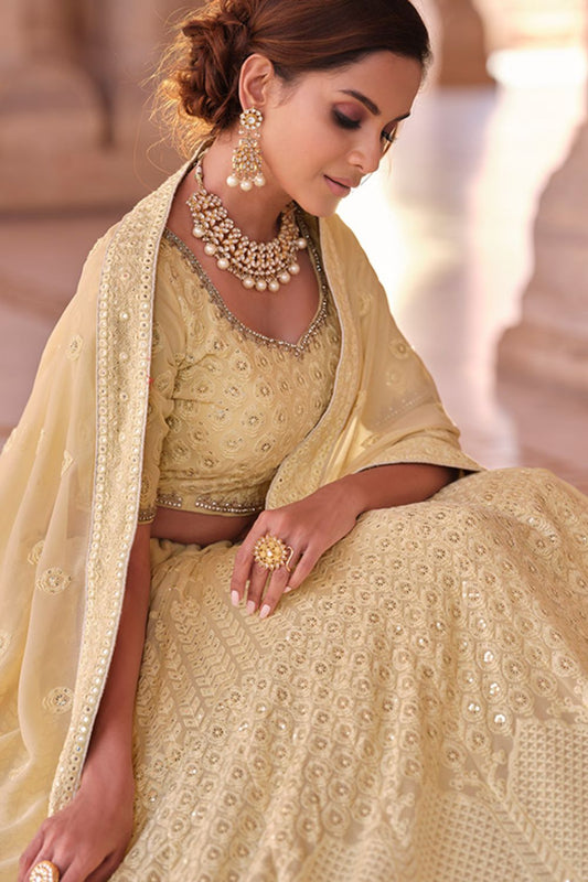 Regular price From £160.92 GBPRegular priceUnit price / perSale price From £160.92 GBPCream Georgette Bridal Sangeet Lehenga Choli SFARY12404