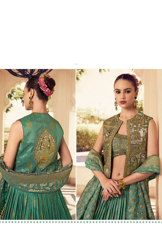 Regular price £221.32 GBPRegular priceUnit price / per£266.22 GBPSale price £221.32 GBP-16% OFFGreen Silk Lehenga Choli SFSMT45412R