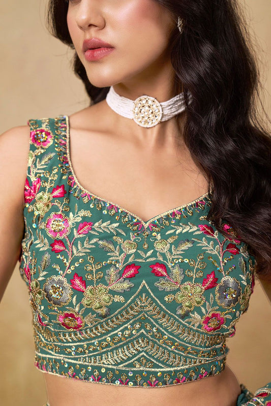 Regular price From £96.62 GBPRegular priceUnit price / per£156.56 GBPSale price From £96.62 GBP-38% OFFGreen Georgette Sangeet Party Lehenga Choli SFZC5402