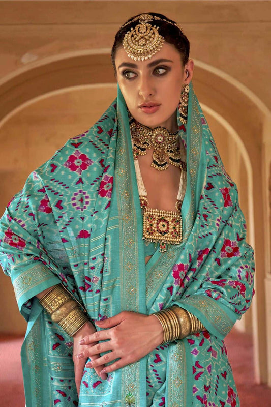 Regular price From £97.98 GBPRegular priceUnit price / per£155.18 GBPSale price From £97.98 GBP-36% OFFTurquoise Silk Saree Blouse Patola Design SFSJDN31106