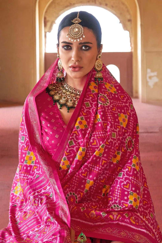 Regular price From £97.98 GBPRegular priceUnit price / per£155.18 GBPSale price From £97.98 GBP-36% OFFPink Silk Saree Blouse Patola Design SFSJDN31105