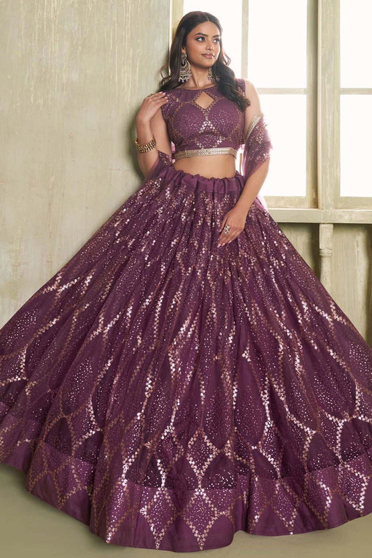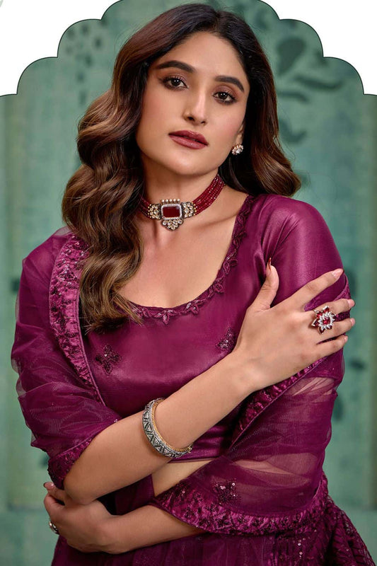 Regular price From £118.70 GBPRegular priceUnit price / per£150.37 GBPSale price From £118.70 GBP-21% OFFBurgundy Wedding Party Sangeet Net Lehenga Set SFYS143204