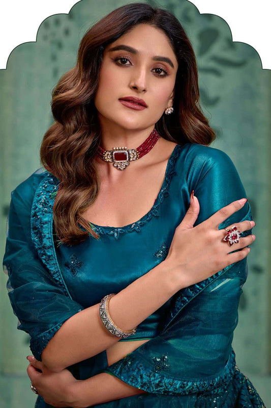 Regular price From £118.70 GBPRegular priceUnit price / per£150.37 GBPSale price From £118.70 GBP-21% OFFBlue Wedding Party Sangeet Net Lehenga Set SFYS143205