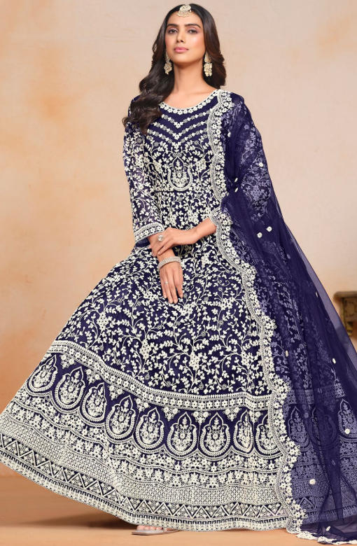 Regular price £165.16 GBPRegular priceUnit price / per£155.15 GBPSale price £165.16 GBPBlue Sangeet Party Plus Size Anarkali Suit In Net SFDFS30803