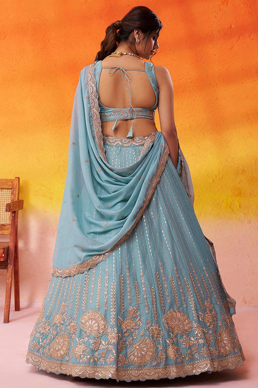 Blue Silk Wedding Lehenga Choli SFROY565707