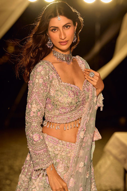 Regular price From £141.19 GBPRegular priceUnit price / per£256.90 GBPSale price From £141.19 GBP-45% OFFGrey Bridal Wedding Net Lehenga Choli SFROY565729