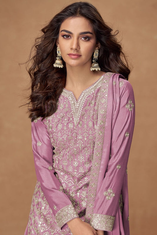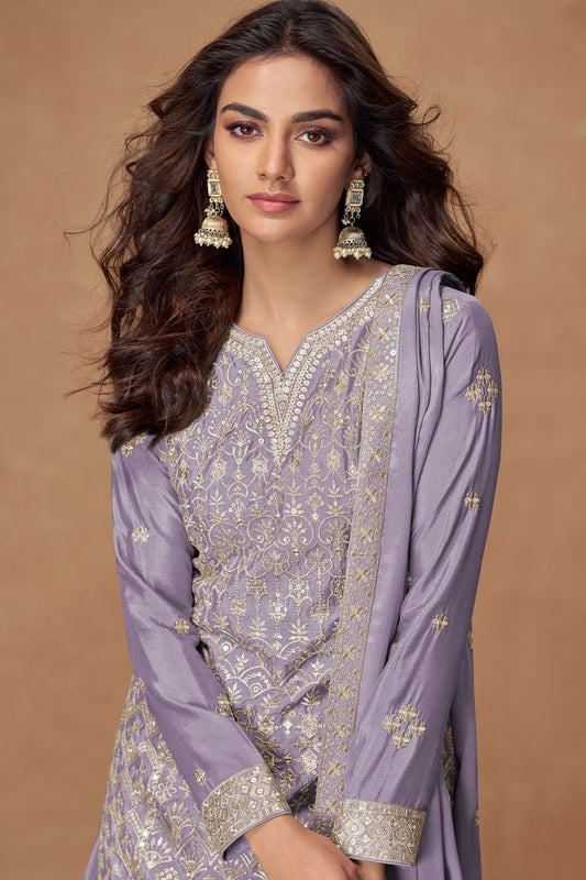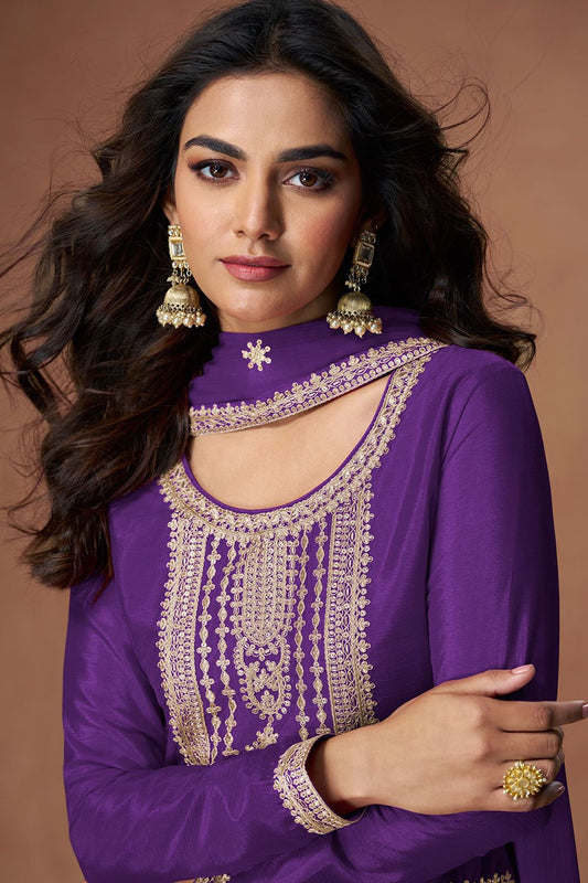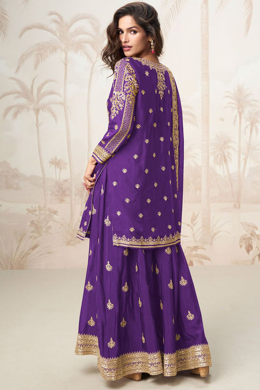 Regular price £100.47 GBPRegular priceUnit price / per£125.89 GBPSale price £100.47 GBP-20% OFFPurple Silk Sangeet Palazzo Suit Ready To Wear SFSMT51001R