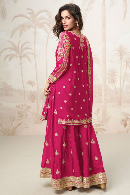 Regular price £100.47 GBPRegular priceUnit price / per£125.89 GBPSale price £100.47 GBP-20% OFFPink Wedding Sangeet Party Chinnon Palazzo Suit SFFK32402R