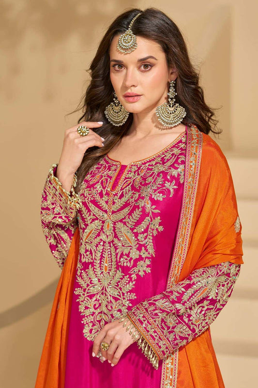 Regular price £166.06 GBPRegular priceUnit price / per£176.66 GBPSale price £166.06 GBP-6% OFFOrange Wedding Chinnon Silk Palazzo Kameez SFSMT50303R