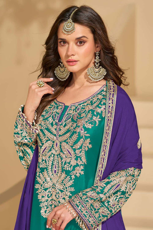 Regular price £133.56 GBPRegular priceUnit price / per£219.57 GBPSale price £133.56 GBP-39% OFFGreen Wedding Chinnon Silk Palazzo Kameez SFSMT50302R