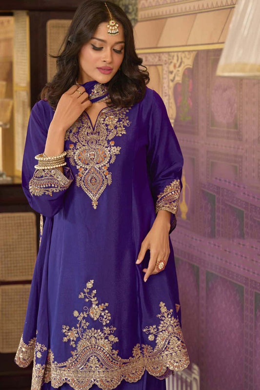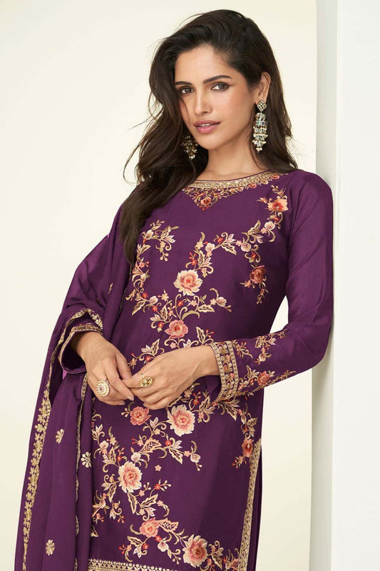 Regular price £130.61 GBPRegular priceUnit price / per£163.66 GBPSale price £130.61 GBP-20% OFFPurple Silk Sangeet Palazzo Suit Ready To Wear SFSMT51001R